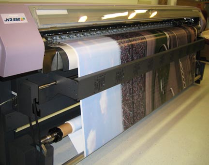 42" wide format printer with UV ink system produces brilliant colors for indoor displays.